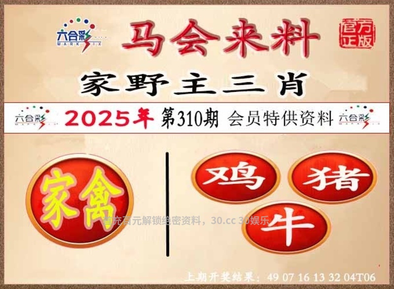 | 310期 | 虎鸡蛇猪 | 开虎16 |